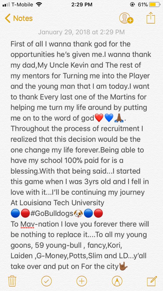 From Houston,Tx to Ruston,LaTo my Former coaches and teammates we are Family foreverhttps://abs.twimg.com/emoji/v2/72x72/1f64f-1f3fe.pngWe built our legacy and left our mark.THE BAR IS SET. The expectations must be Met.Love forever #HokaHeyhttps://abs.twimg.com/emoji/v2/72x72/1f91f-1f3fe.pnghttps://abs.twimg.com/emoji/v2/72x72/1f499.pnghttps://abs.twimg.com/emoji/v2/72x72/2764.png