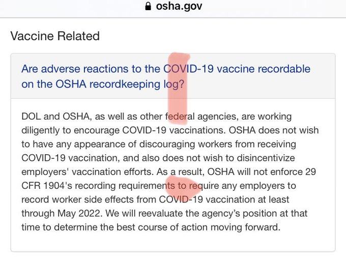 Hmmmmm wonder why OSHA is no longer wanting to track adverse side effects of the vaccine? Do they think if they report on adverse side effects that people would not want to take the vaccine? How is that in the interest of health and safety for citizens?